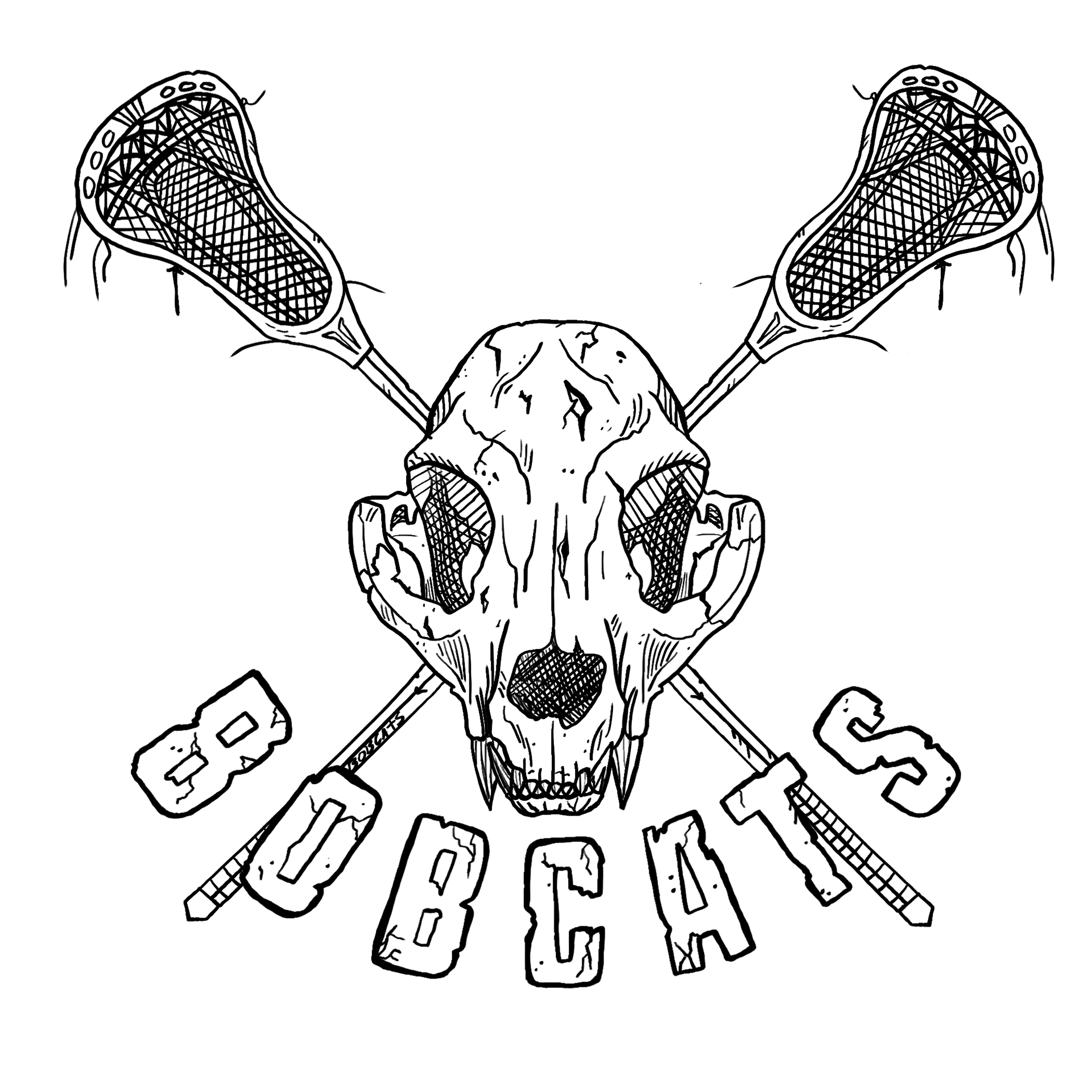 Bobcats skull and Lacrosse Sticks